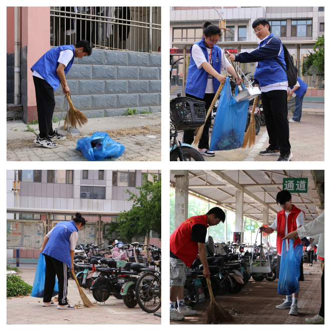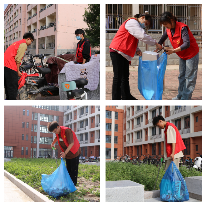 下午4:00,各二级学院团委和学生组织在所负责网格化区域集中进行校园环境卫生综合治理,对全校进行彻底大扫除、大清洁,清理车棚、树林、花园、宿舍楼前后停车区等重点区域积存垃圾杂物,消除卫生死角,将违规停放车辆整齐摆放在停车区域,排查并及时清理校园内的僵尸车辆。