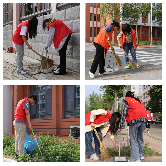 天气炎热,但志愿者们不嫌脏、不喊累、不怕苦,分工合作、互帮互助,践行“奉献、友爱、互助、进步”的志愿者精神,一抹抹志愿红成为校园中亮丽的风景线。经过几个小时的辛勤劳动,校园环境焕然一新。