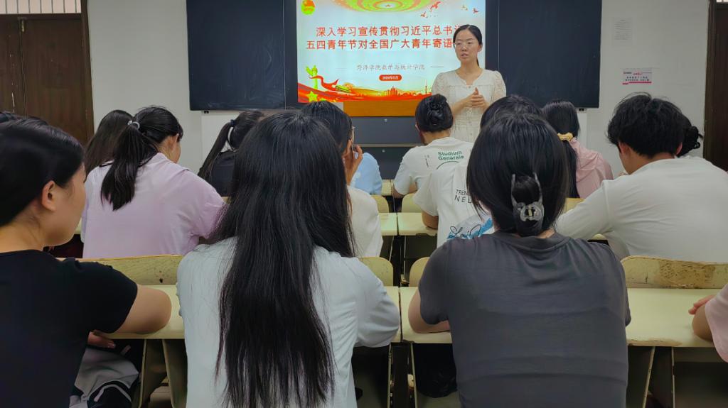 在第八期“青春学堂”上,外国语学院团干部曹展展带领学生组织代表、二级学院学生干部、班级团支书代表共120余名青年学生,共同学习了习近平总书记五四青年节对全国广大青年寄语精神。她通过分享战斗英雄黄继光、时代楷模黄文秀和我们身边青年榜样的故事,鼓励学生干部要以习近平总书记寄语精神为指引,继承和发扬五四精神,勇于担当、创新实践,为实现中华民族伟大复兴的中国梦贡献自己的力量。