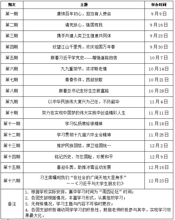 必赢集团bwin2021-2022学年第一学期“周四论坛”学习计划