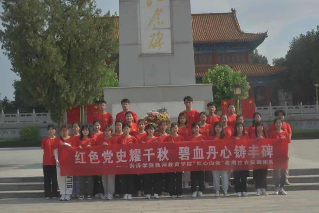 7月13日至7月15日,必赢集团bwin教师教育学院“红心向党”社会实践队以“永远跟党走 奋进新时代”为主题,先后到曹县红三村鲁西南烈士陵园 、东明县小井镇小井村纪念馆、东明黄河滩区居民迁建村台进行了参观学习。