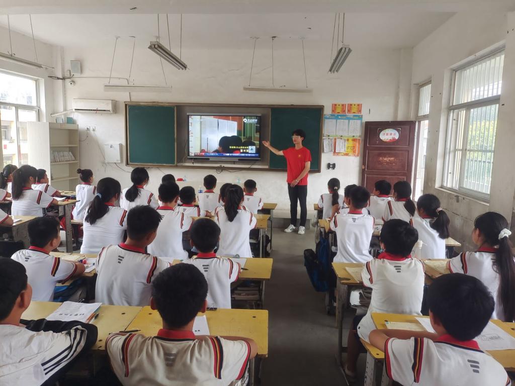 大学生志愿者们深入班级开展党史红色故事宣讲活动,让党的理论和声音及时进入校园,加强中小学生“四史”教育,进一步培养青少年爱党、爱国、爱社会主义的思想情感。